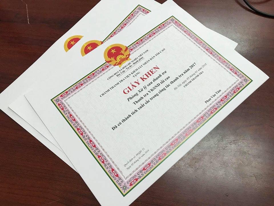 In Bảo An với dich vụ in ấn lấy nhanh, lấy gấp trong ngày các loại phôi giấy khen hoặc in đầy đủ cả tên:
