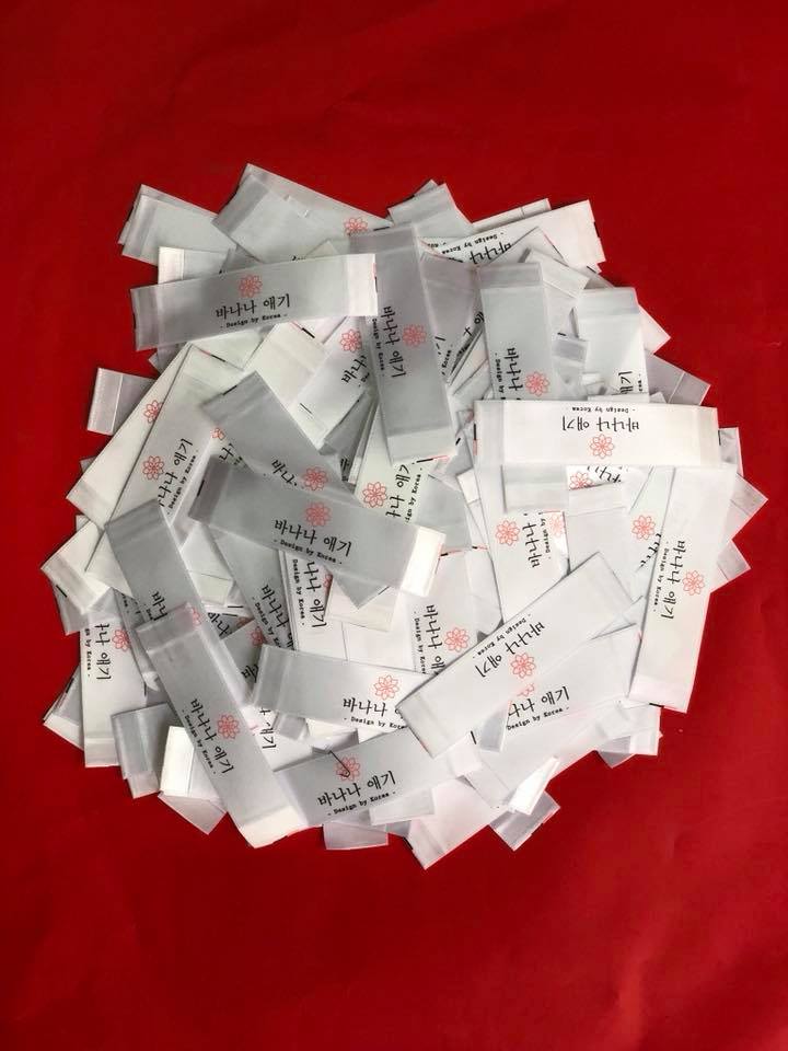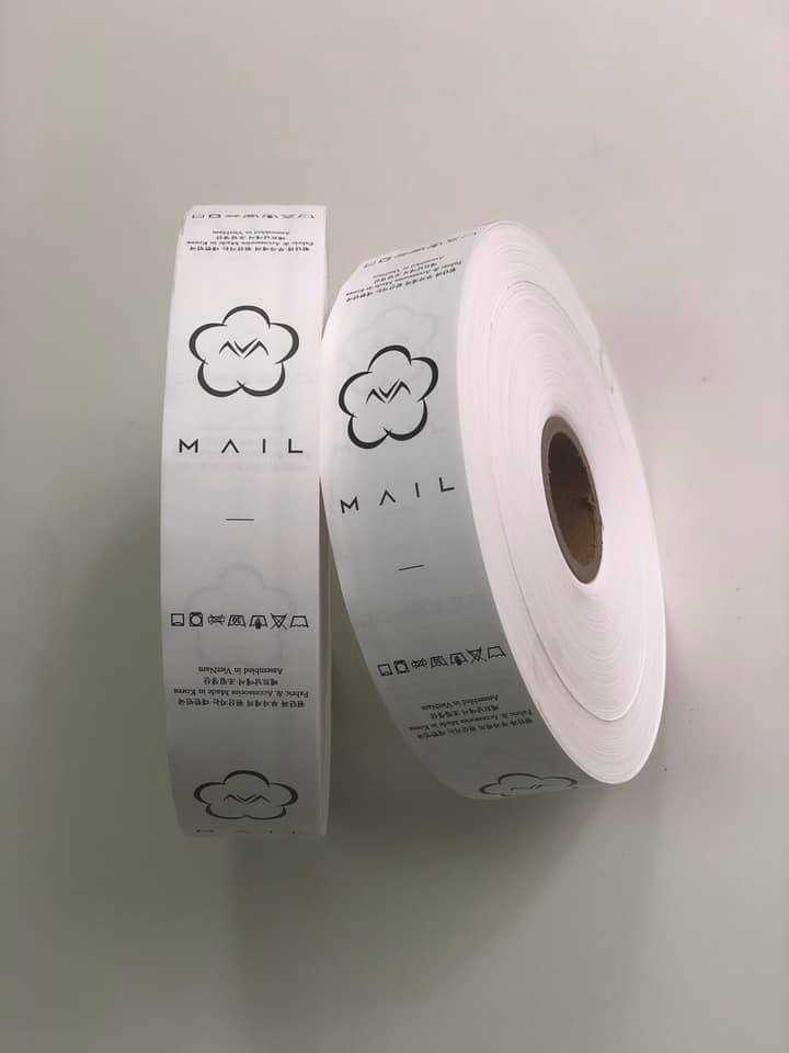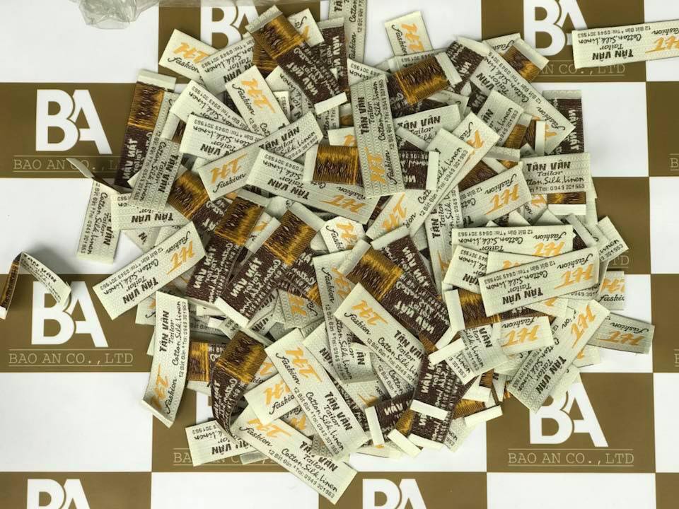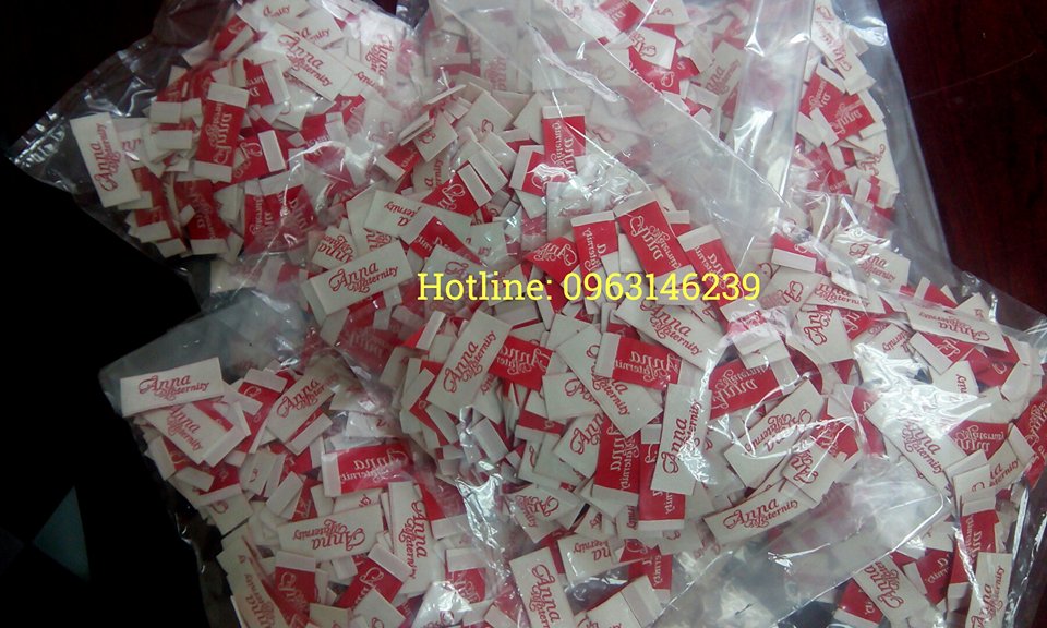 – Mác hướng dẫn sử dụng (mác lụa, mác vải in, mác giặt): chất liệu satin lụa bóng dày hoặc mỏng, hoặc chất liệu vải nylon, chất liệu vải cotton. Hàng dệt sẵn chỉ việc in chữ.